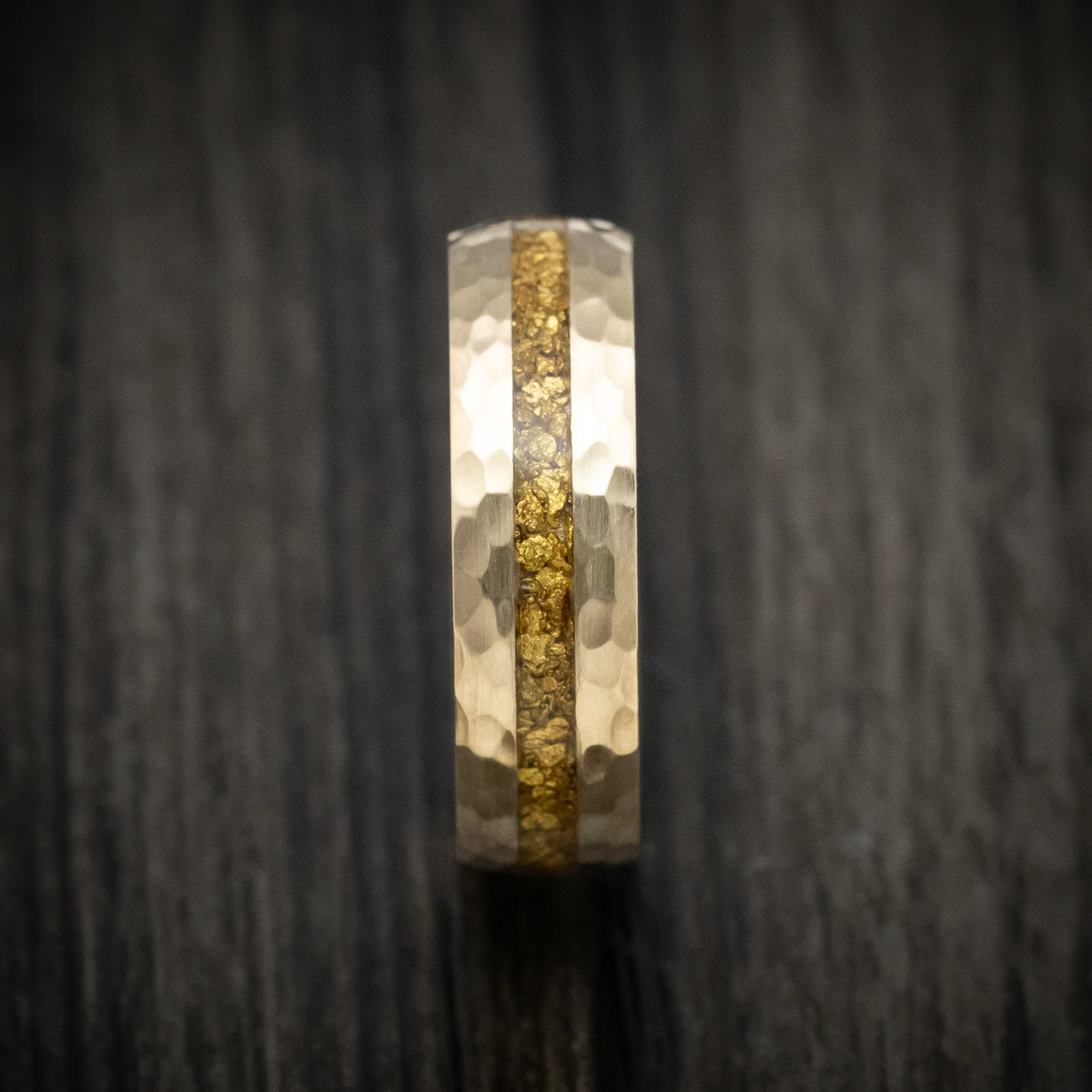 Yellow Gold and 24K Raw Gold Nugget Men's Ring Custom Made Band