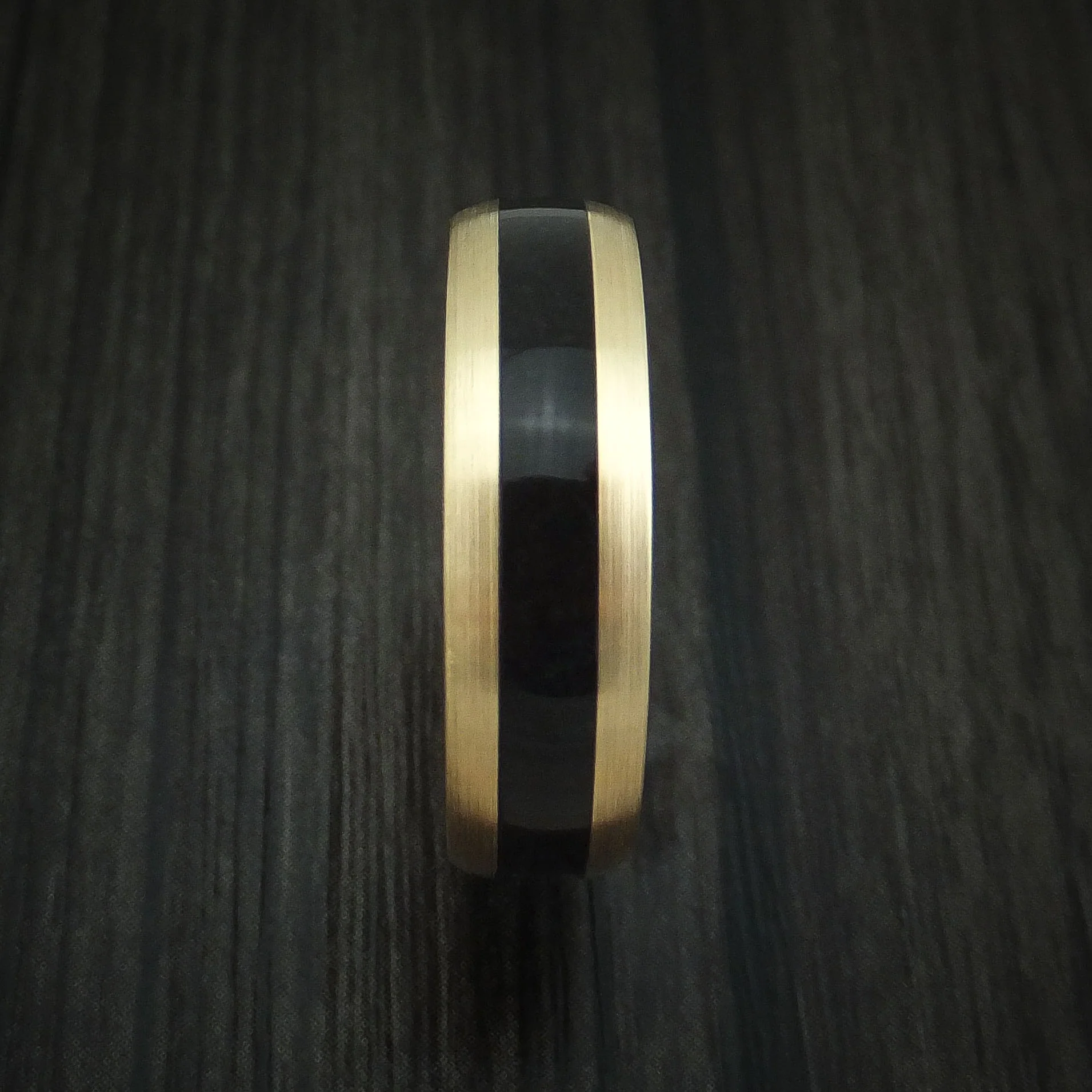 Yellow Gold and Black Dinosaur Bone Men's Ring Custom Made Fossil Band