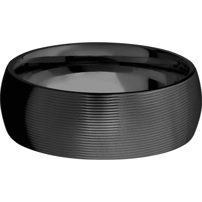 8mm wide Domed Black Zirconium Ring with Machine Finish—