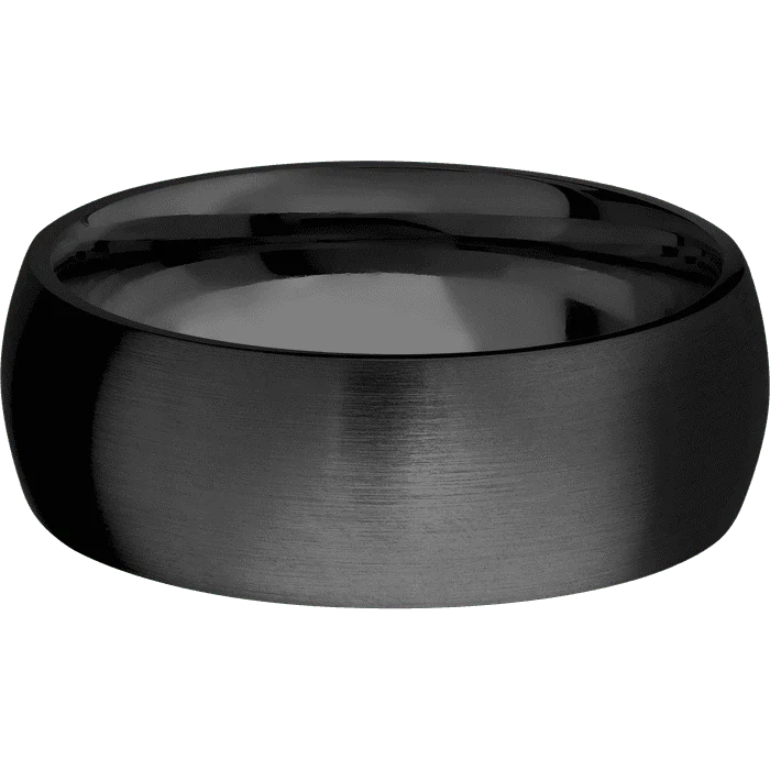 8mm wide Domed Black Zirconium Ring with Satin Finish—