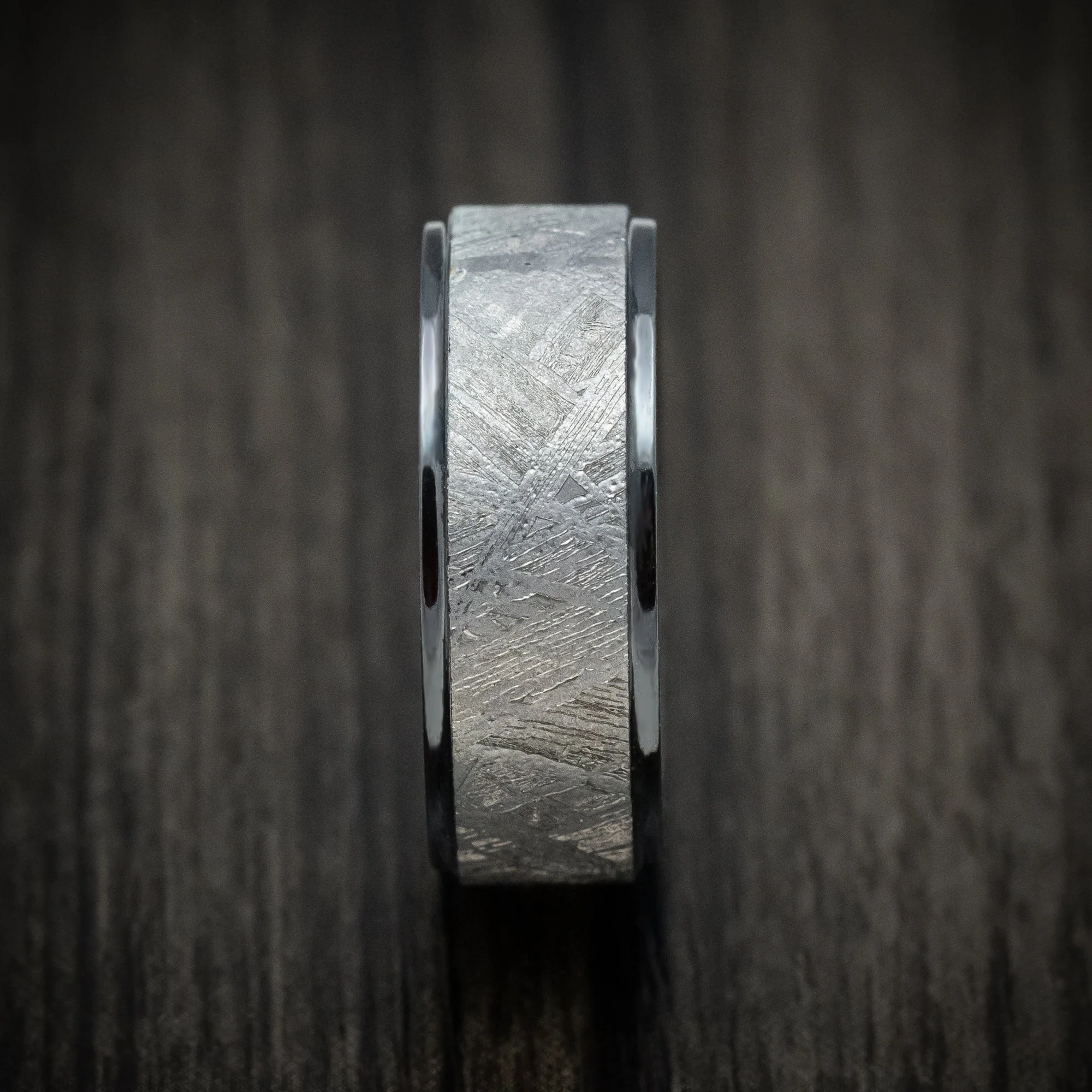 Black Titanium or Black Zirconium Custom Men's Ring with Gibeon Meteorite Inlay and Abalone Sleeve