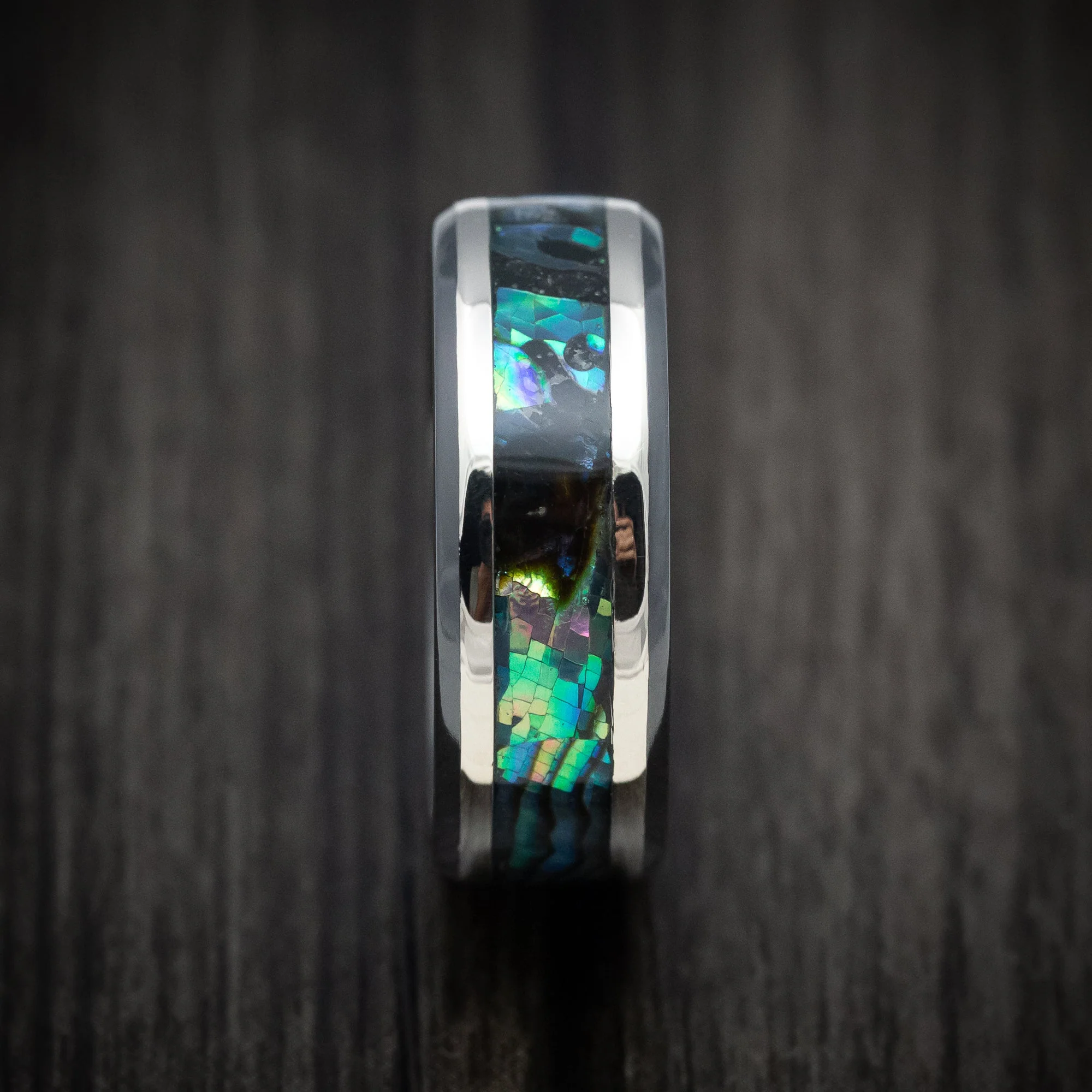 Black Titanium Men's Ring with Silver and Abalone Inlays Custom Made Band—