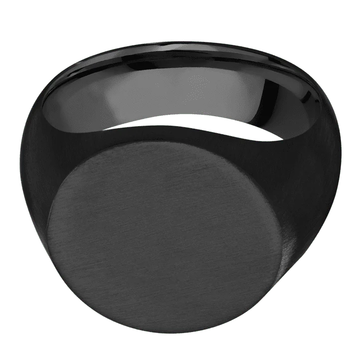 -70%Circle Black Titanium Signet Ring / Satin Ring Finish and Satin Signet Finish / Size 10—
