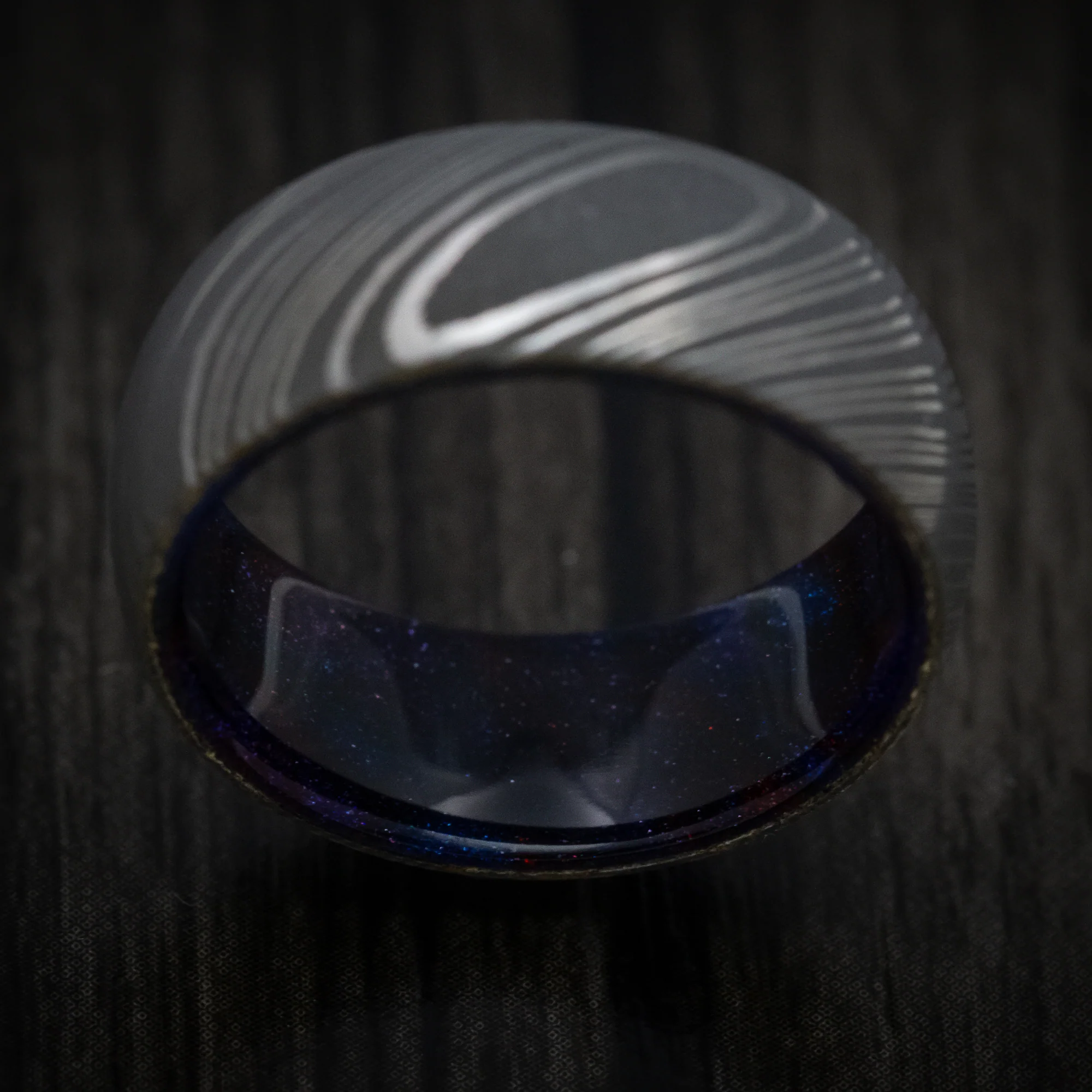 Damascus Steel and DiamondCast Sleeve Men's Ring Custom Made