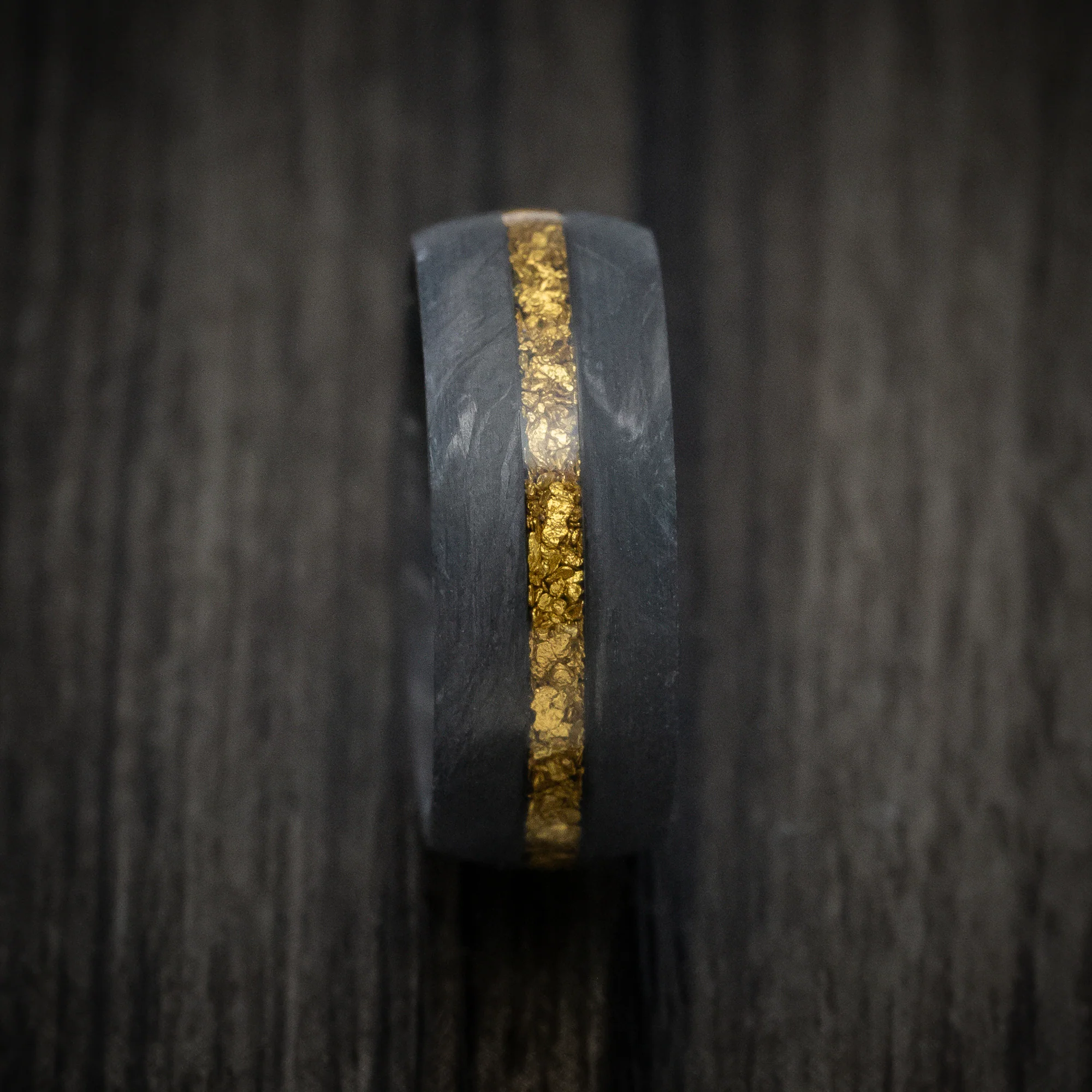 Forged Carbon Fiber and 24K Raw Gold Nugget Men's Ring Custom Made Band