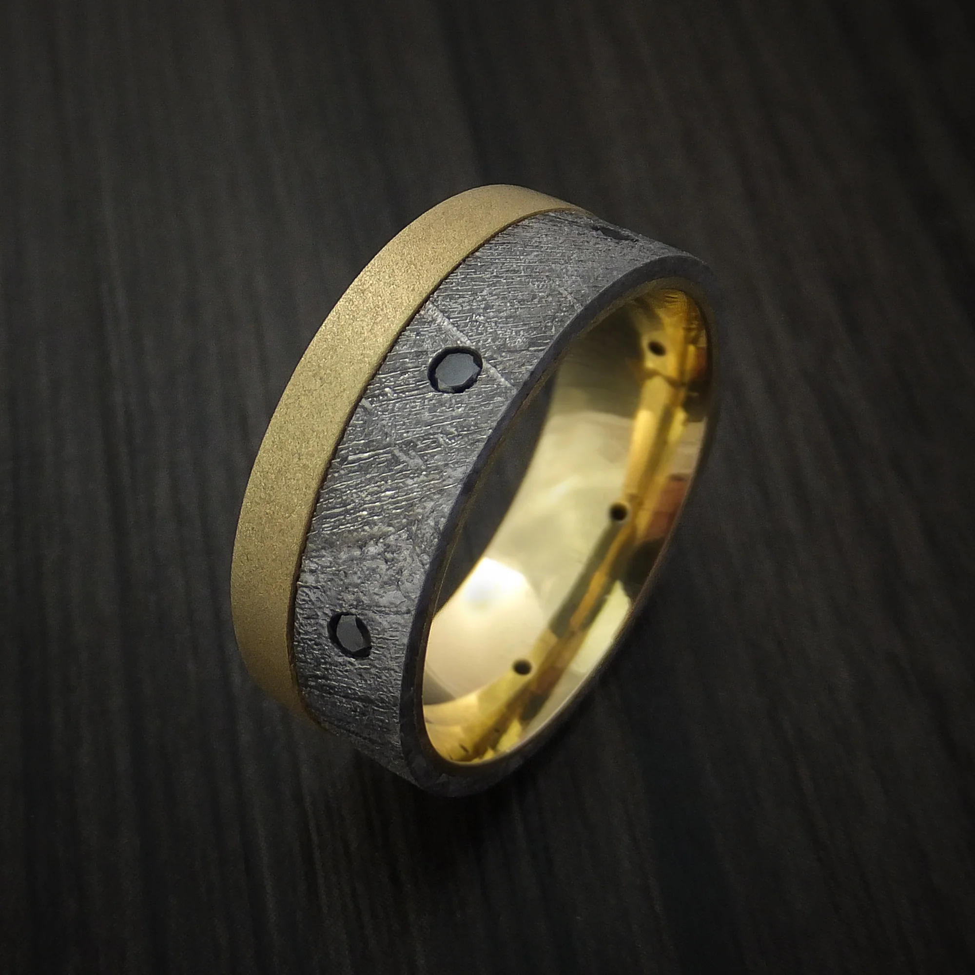 Gibeon Meteorite and Yellow Gold Men's Band with Black Diamonds