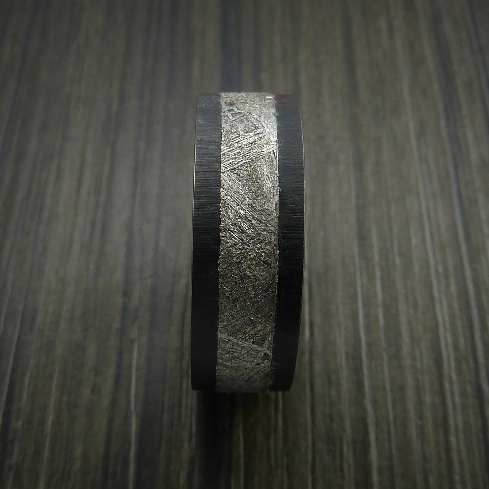 Black Zirconium Men's Ring with Gibeon Meteorite Inlay Custom Made Wedding Band