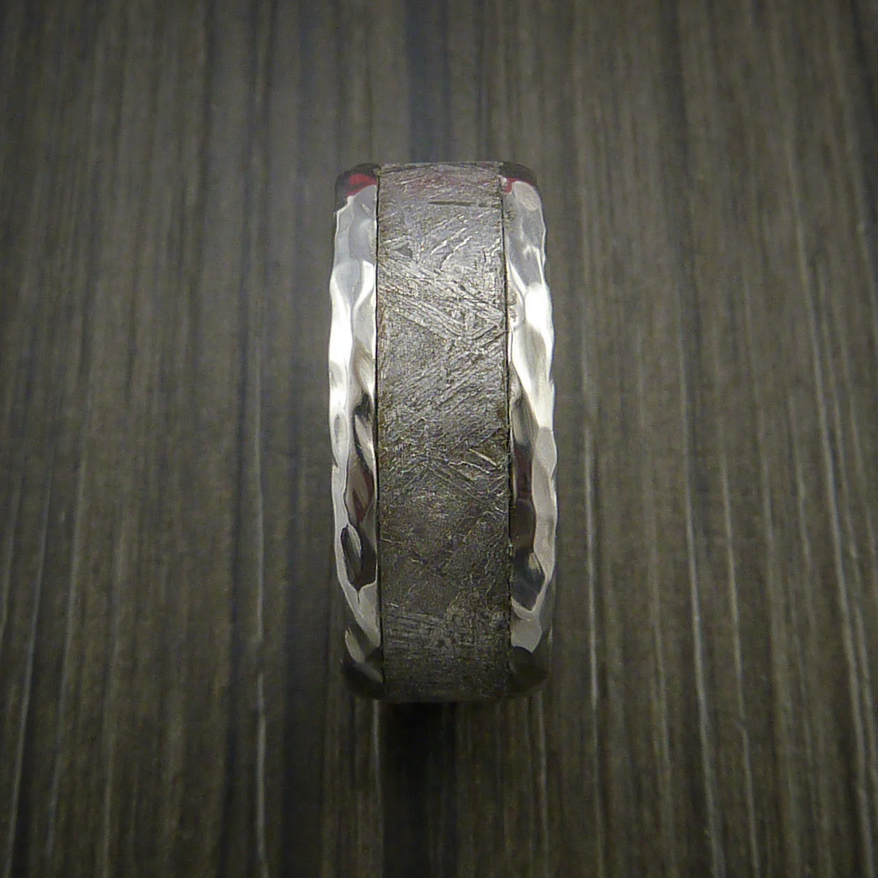 Hammered Cobalt Chrome Men's Ring with Gibeon Meteorite Inlay Custom Made Wedding Band