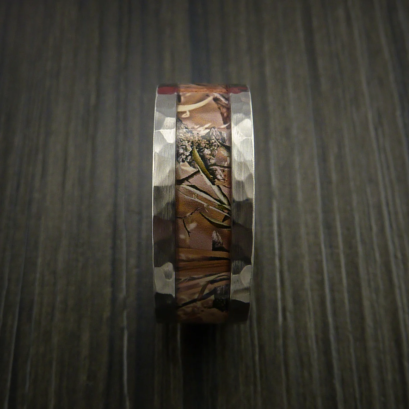 Hammered Titanium Men's Ring with Camo Inlay Custom Made Wedding Band