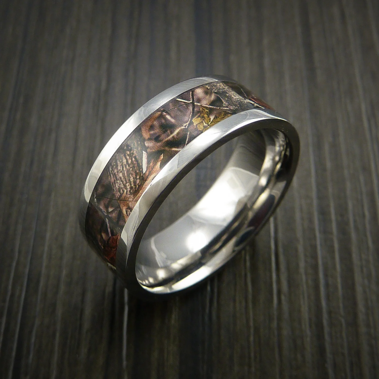 Titanium Men's Ring with Camo Inlay Custom Made Wedding Band