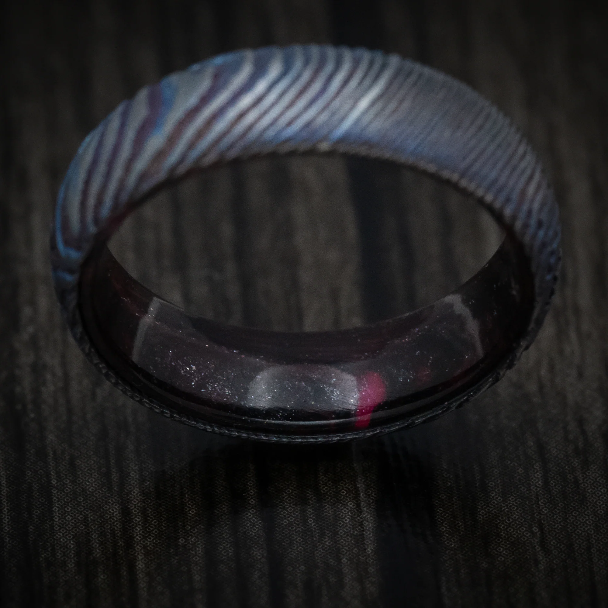 Kuro-Ti Heat-Treated Titanium Damascus and DiamondCast Sleeve Men's Ring Custom Made—
