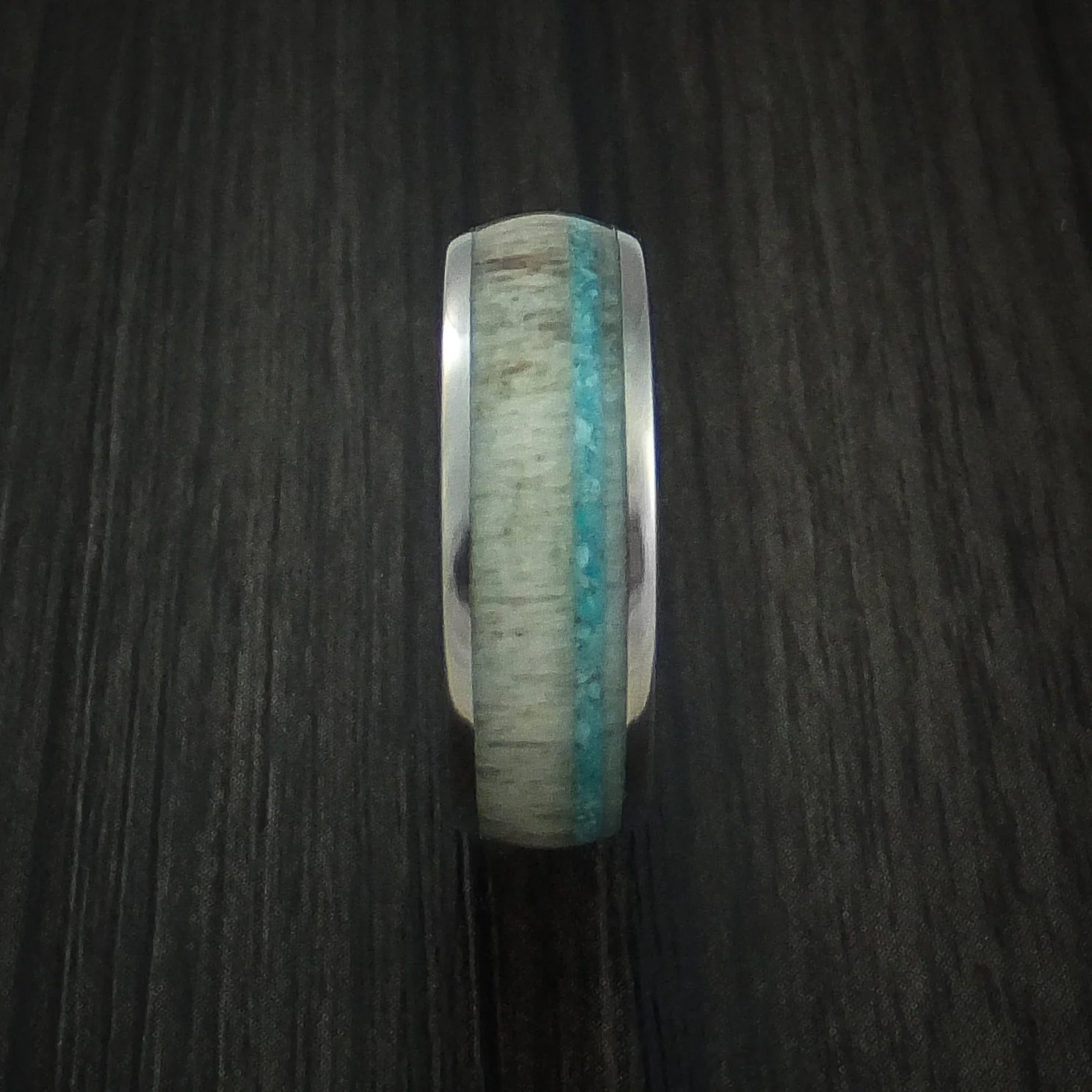 Titanium and Antler Men's Ring with Turquoise Custom Made Men's Ring