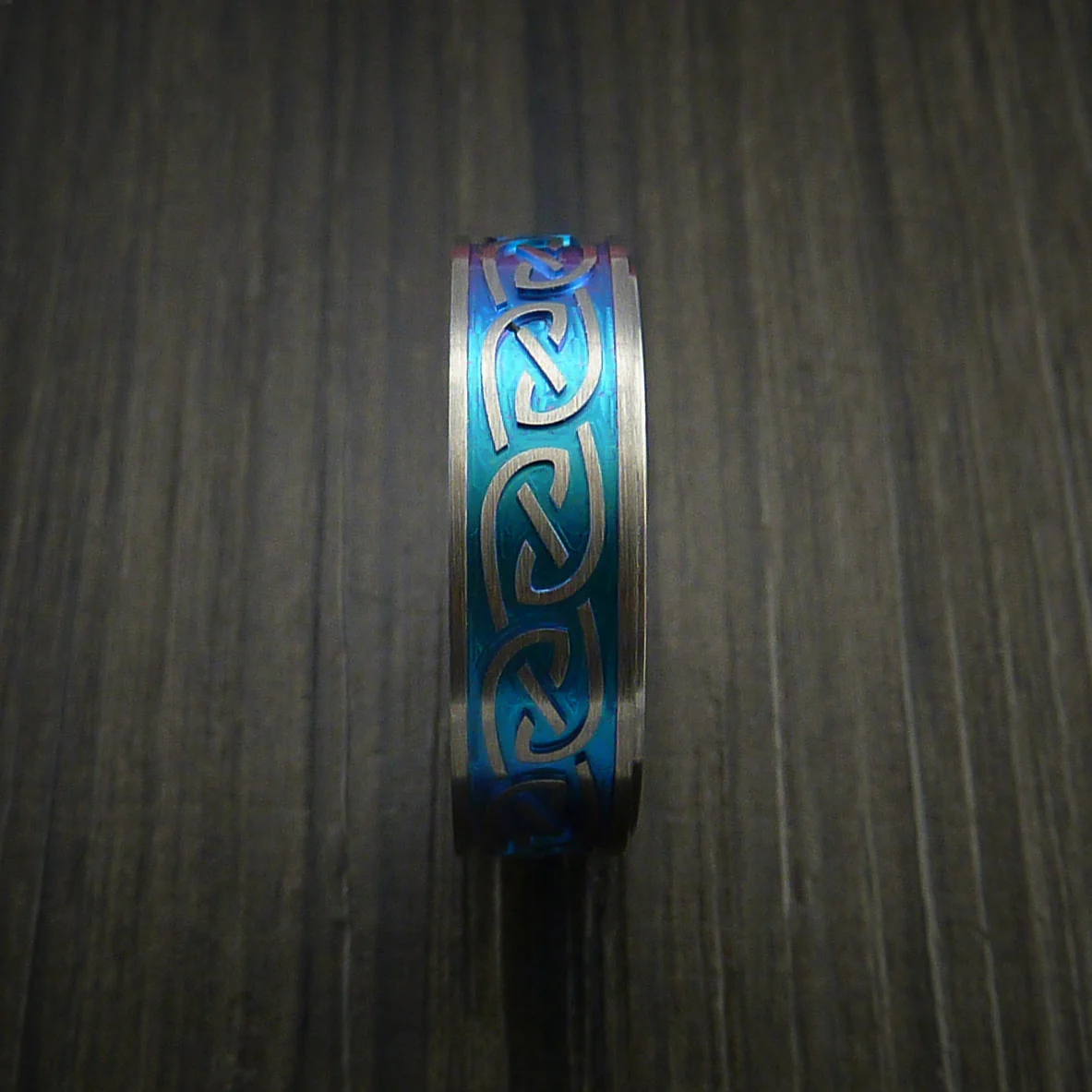 Titanium Anodized Celtic Band Infinity Symbolic Wedding Men's Ring Custom Made