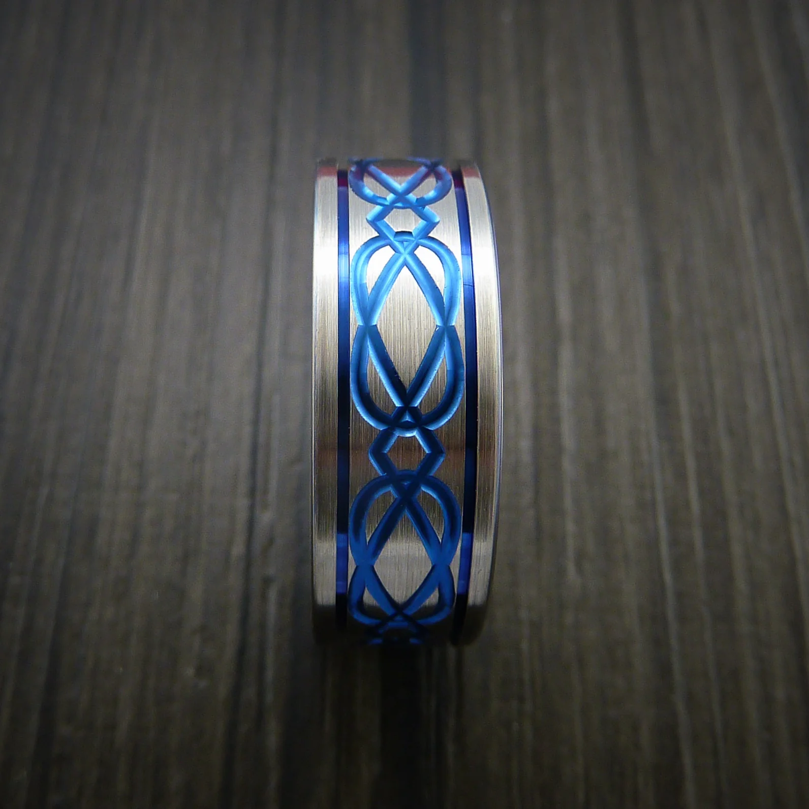 Titanium Celtic Band Wedding Men's Ring Custom Anodized Color Inlay—