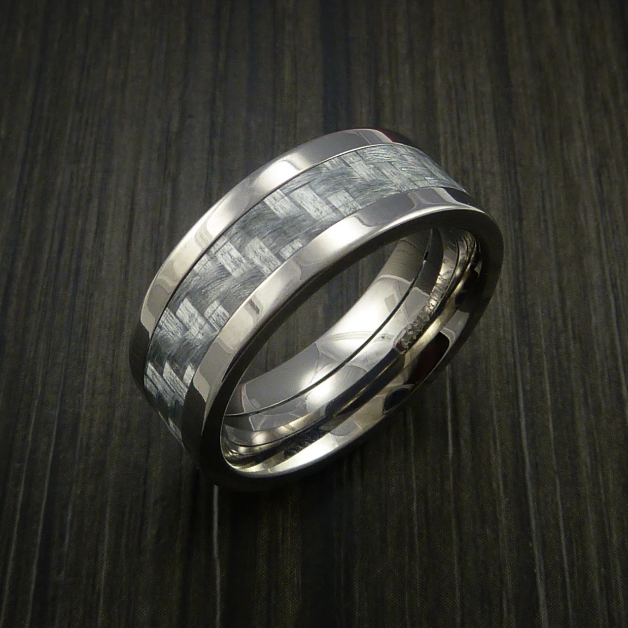 Titanium Men's Ring with Silver Texalium Carbon Fiber Inlay Custom Made Wedding Band—
