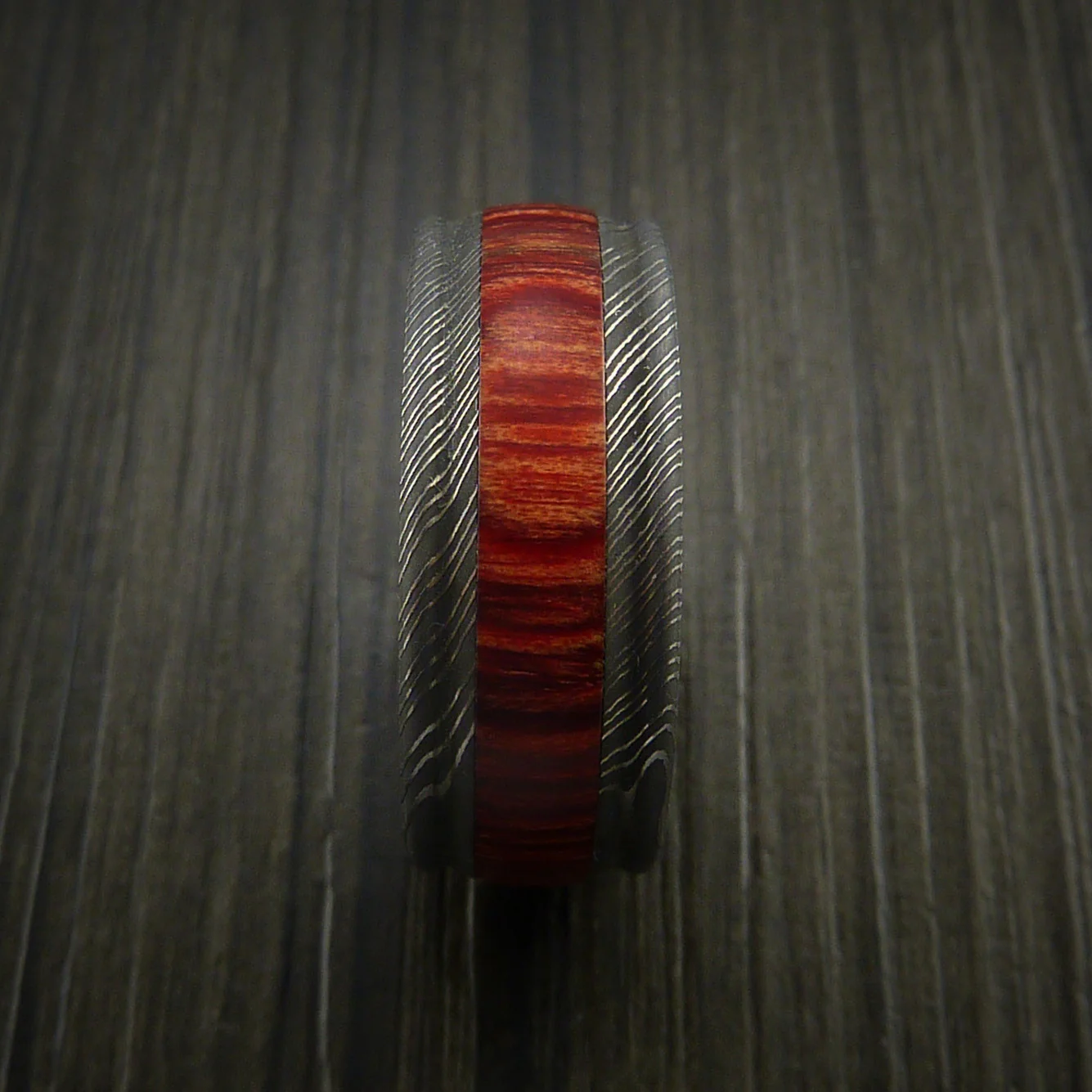 Wood Men's Ring and Damascus Men's Ring inlaid with Hardwood Custom Made—
